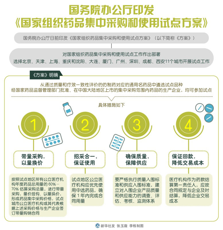 图表:国务院办公厅印发《国家组织药品集中采购和使用试点方案》