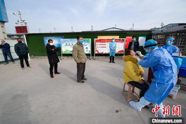 16日上午,山西省太原市杏花岭区坝陵桥社区卫生服务中心门口,企业复工人员正在排队等候咽拭子采样,相互保持1米距离。疫情之前,这家社区的临床检验中心主要针对高血压等慢病项目,3月9日获得新冠病毒核酸检测准入资质,截至目前,已为企业近300名复工人员检测。