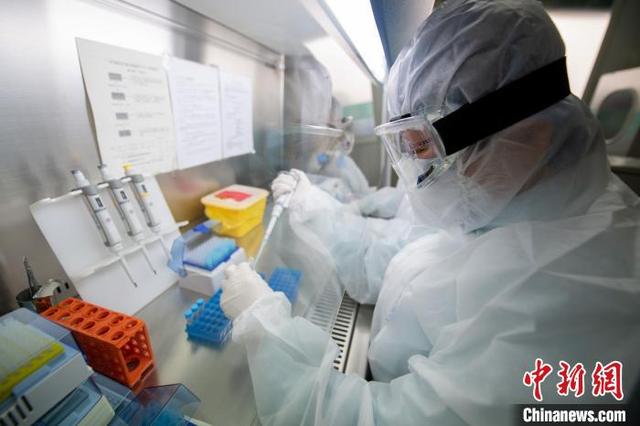 医疗人员将收集来的咽拭子采样标本消毒存放。 韦亮 摄