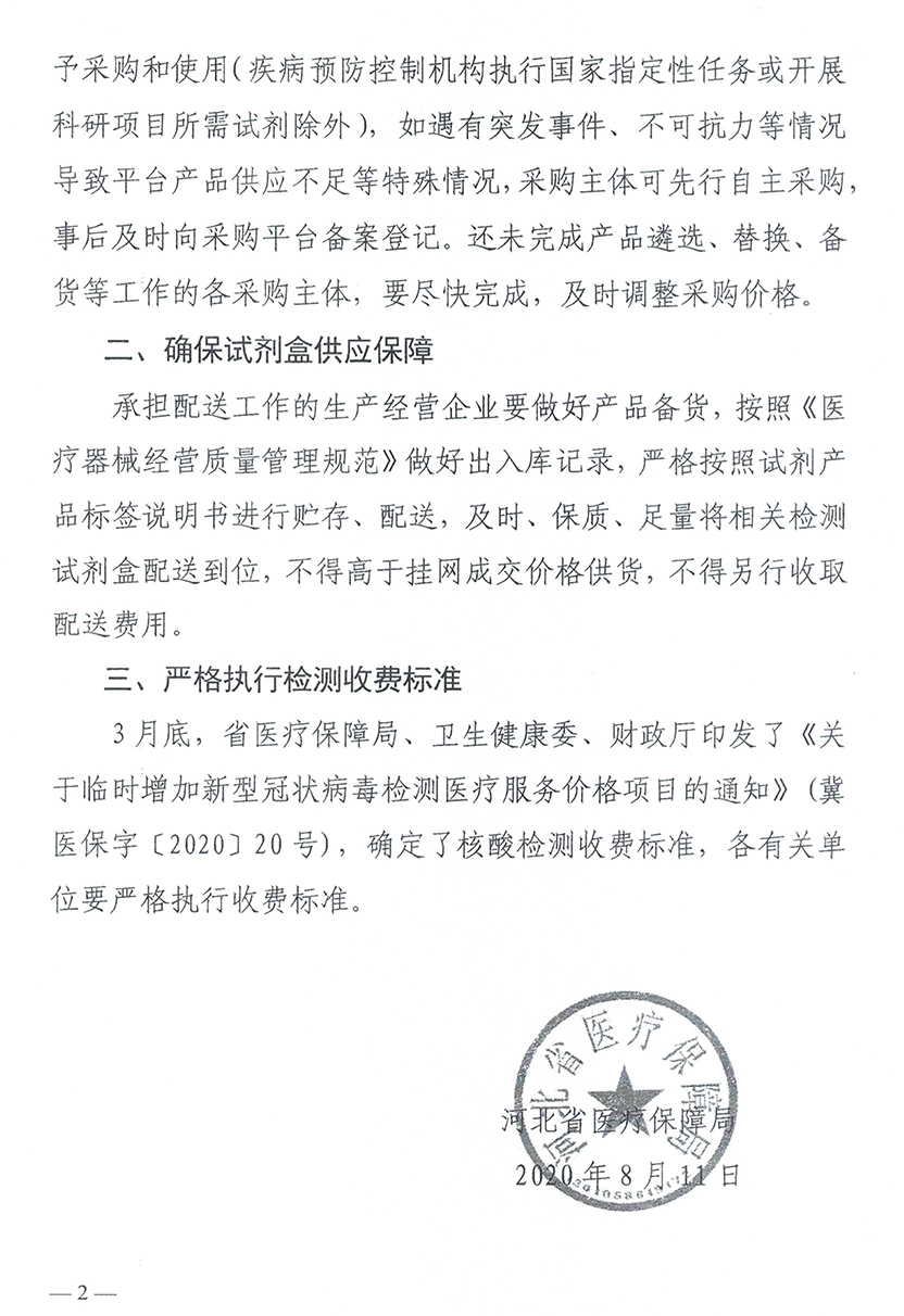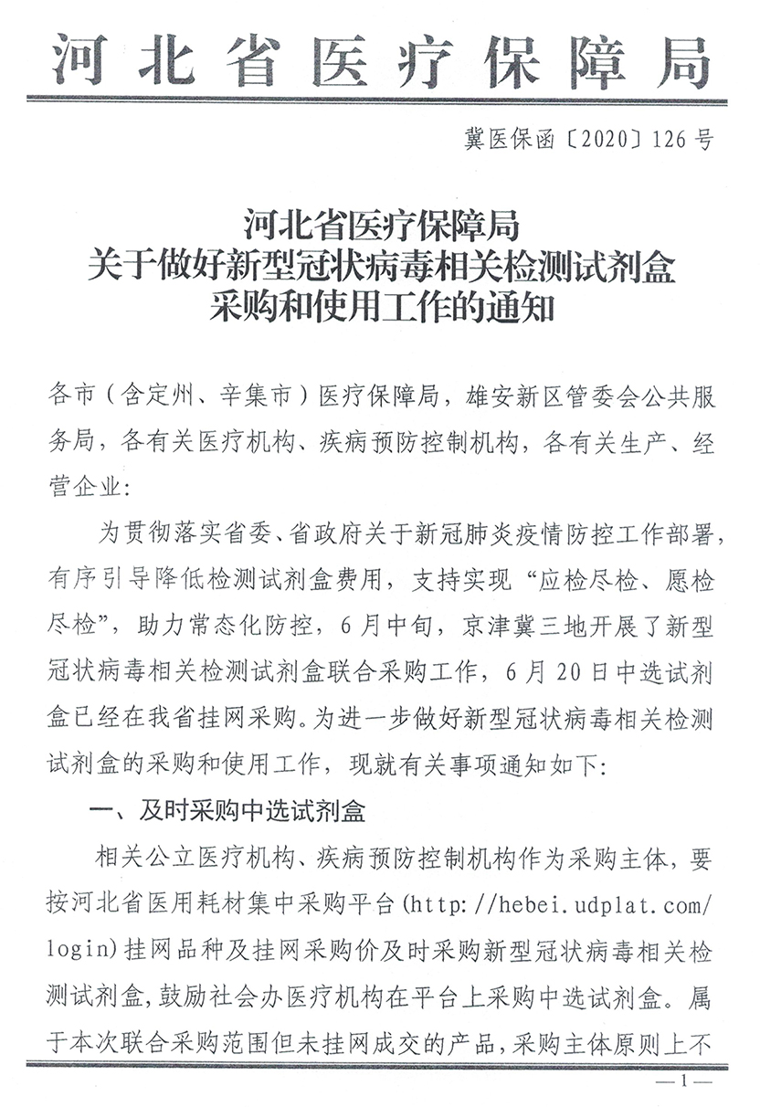 关于做好新型冠状病毒相关检测试剂采购和使用工作的通知邯药采办﹝2020﹞9号