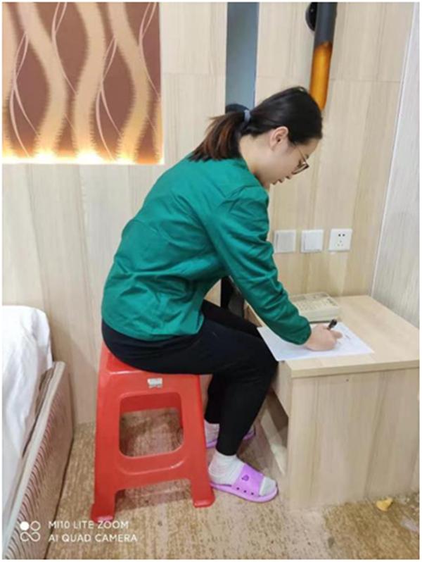 虽然是***次进驻隔离点,作为医学观察点的一员,积极服从主任和护士长对专班工作人员的职责分工,做好每日患者的体温记录,主动询问被隔离人员的各种需求,遇到问题及时上报,保护患者和工作人员的健康。她认真学习防护服的穿脱流程和消毒隔离措施,做好岗前培训、文件学习、转运流程、体温检测等一系列规章制度,迅速进入角色并开展工作,坚决把疫情防控工作作为当前的重大政治任务和***重要的工作。