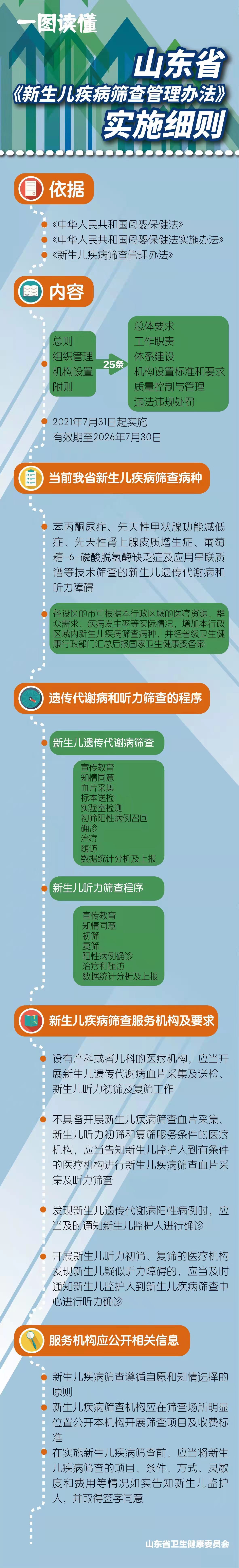 一图读懂—山东省《新生儿疾病筛查管理办法》实施细则