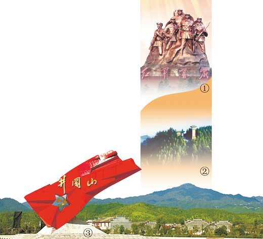 图③:井冈山脚下的“井冈红旗”雕塑。资料图片