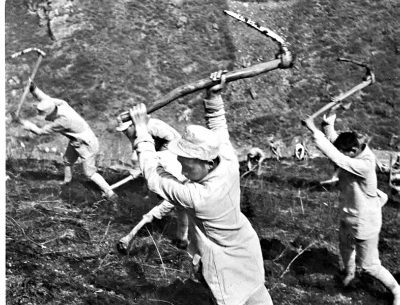 八路军359旅在南泥湾开荒时的情景。 新华社图片