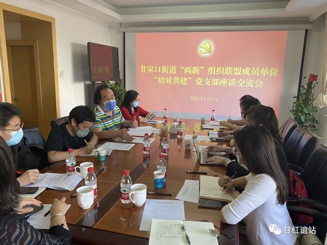 为了充分发挥我街道“两新”组织党建联盟优势,推进联盟“小新”支部助力工程开展,促进支部间的联学共建,不断提高各成员单位的组织建设。2022年9月7日下午,甘家口街道“两新”组织党建联盟召开结对共建支部交流座谈会,联盟主席单位、部分成员单位书记参加,会议由联盟主席单位党组织书记万守刚同志主持。