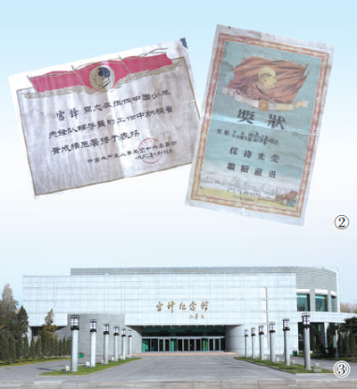 图②:颁发给雷锋的少先队辅导员奖状。人民视觉 图③:抚顺雷锋纪念馆。人民视觉