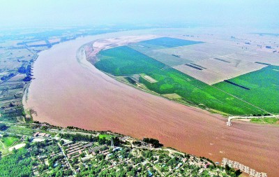 俯瞰河南省兰考县黄河湾风景区。新华社发