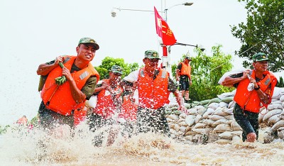 构筑围堰,封堵决口,填塘固基……广大官兵冒着炎炎烈日,搬石料,垒堤坝,一身泥水一身汗。热了,就用编织袋兜起江水冲头降温,或者干脆跳到浑浊的江水里浸泡一下再战斗;困了,就大把大把地往脸上抹风油精,驱赶瞌睡,有的甚至晕倒在堤坝上。尽管如此,他们始终牢牢挺立在滔滔洪水的前面,一步也不曾后退。