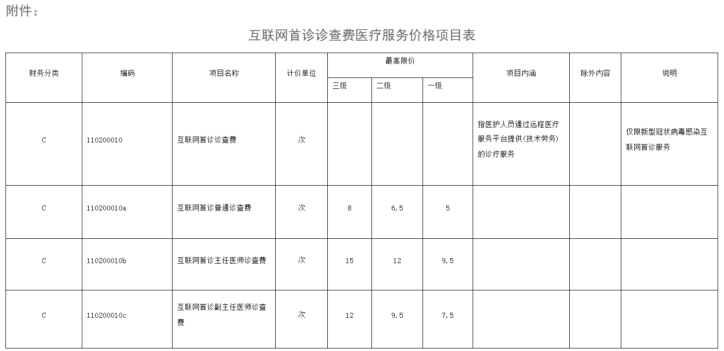 附件:互联网首诊诊查费医疗服务价格项目表