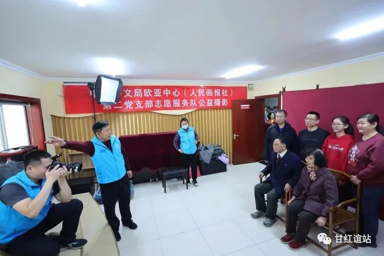 “来,一起看这里!”甘家口街道新时代文明实践所内,人民画报社的青年摄影志愿者们,正在紧张有序地为一组组爱心家庭拍摄全家福。