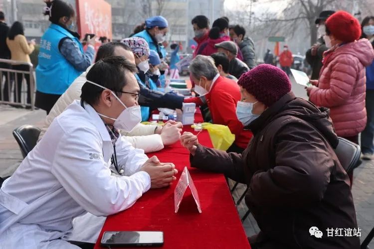 3月5日上午,由甘家口地区非公党建联盟、团建成员单位、地区医院专家医疗队组成的志愿服务团队和居民志愿者们早早来到四道口社区增光佳苑广场。志愿者们一同搭台子、摆工具、安设备,热情接待居民朋友们的到来。