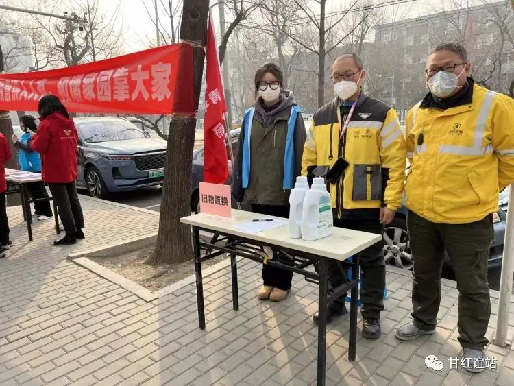 “甘小美”新就业群体志愿者们今天当起了旧物置换“登记员”。摊位前,快递小哥志愿者们与来往居民热情交流,帮助居民把拿来家里的废旧可回收物品搬运摞齐,并置换成洗衣液等实用的生活日用品。“刚刚张大爷说他家有辆废旧的老‘二八杠’,堆在家里占地方,我这就上楼去帮他搬下来置换!”“甘小美”骑手志愿者小刘说。