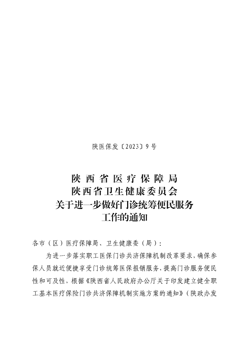 陕西:关于进一步做好门诊统筹便民服务工作的通知