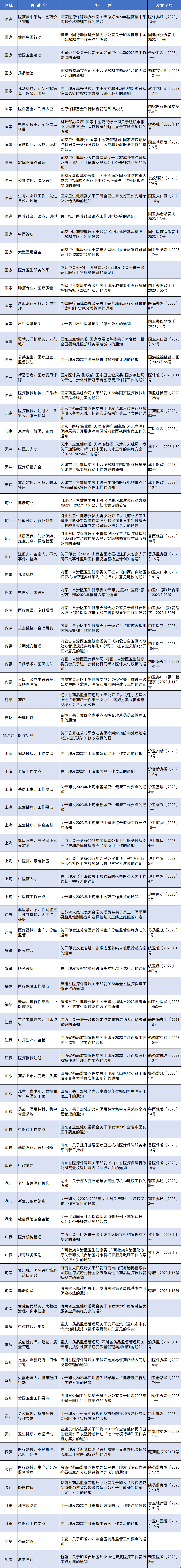 医药先锋系列:《全国医药政策月度汇编》2023年第3期