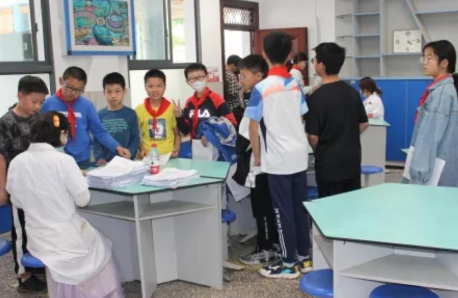 “你一天喝几次含糖饮料?”“一次。”“如果以后想喝饮料了,要选择能量低的饮料,如酸奶、鲜榨果汁等。含糖饮料喝多了不仅会长胖,还会腐蚀牙齿,小心蛀牙噢。”这是左家塘街道康达社区卫生服务中心公卫科主任陈莉萍与枫树山鸿铭第二小学学生的对话。为全面贯彻落实2023年我国特定健康问题哨点监测项目工作计划,5月24日下午,雨花区左家塘街道康达社区卫生服务中心公卫团队赴枫树山鸿铭第二小学开展工作,旨在提高学生的健康意识,及早发现特定健康问题,促进健康生活方式培养。