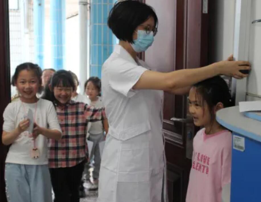 一结束午休,小朋友们便高高兴兴来到棋艺室门口排起长队,先由中心公卫科成员陈叶红为孩子们进行身高测量。小学是孩子生长发育的关键期,也是奠定孩子身高增长基础的重要时期,这一时期孩子的营养补充和身体素质情况需要重点注意,而身高可侧面反映出孩子的营养供给状况。陈叶红边测量边不忘叮嘱孩子们要多运动,提高身体素质,保持充足睡眠等。