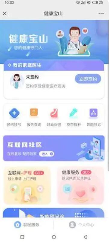 图说:社区互联网医院入口“健康宝山”微信公众号