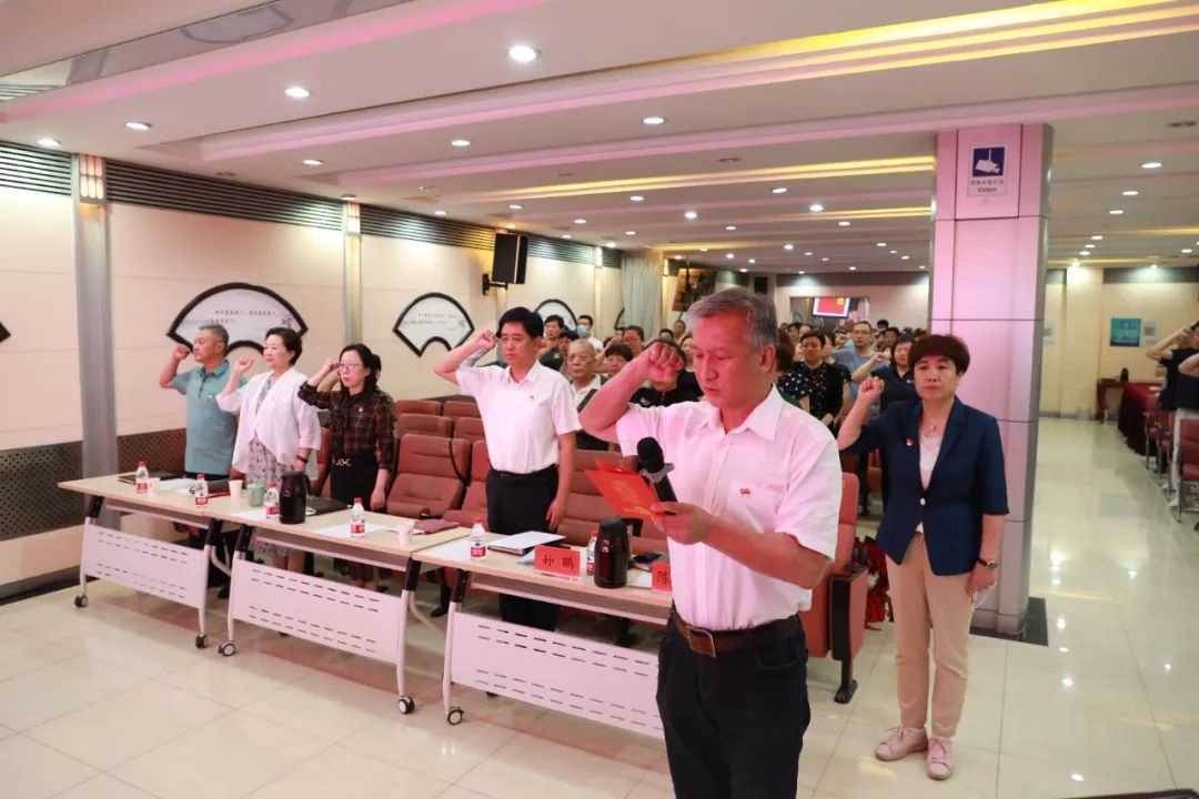 街道领导班子成员为3名街道退休老党员颁发“光荣在党50年”纪念章,感谢他们多年来的无私奉献,并致以崇高的敬意,鼓励他们继续保持共产党人本色,激励广大青年党员继续传承红色血脉。随后,孙鹏带领全体党员重温入党誓词。全体党员干部面对鲜艳的党旗,高举右手庄严宣誓,铿锵有力、掷地有声的誓词再一次使大家重温入党初心,坚定了跟党走的信念。