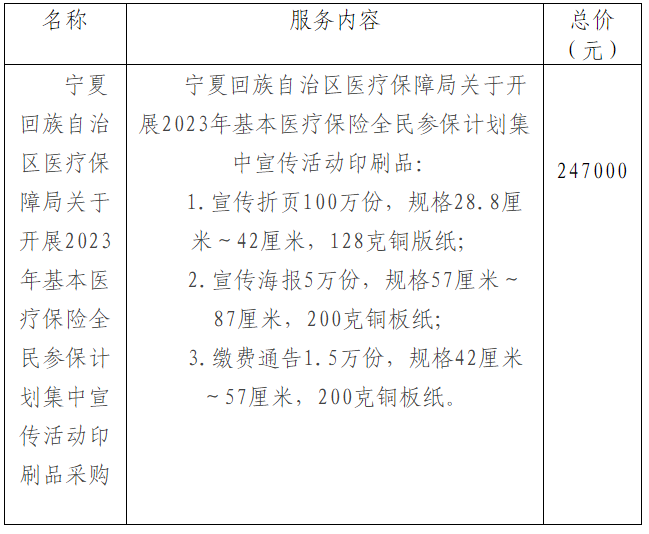 宁夏回族自治区医疗保障局2023年基本医疗保险全民参保计划集中宣传活动印刷品采购项目