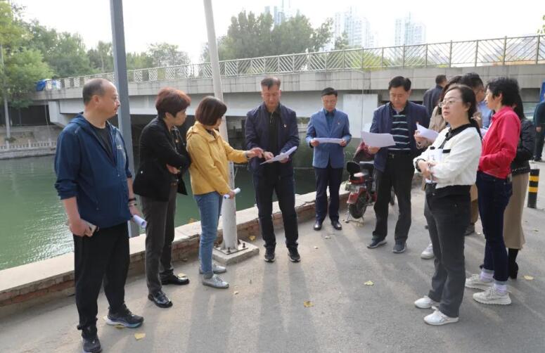 领导班子一行来到京密引水渠北岸沿线,对辖区京密引水渠滨河空间、西钓新村及中央电视塔内部底商现状进行实地考察,随行的设计师对中塔园周边公共空间改造提升初步方案进行讲解。