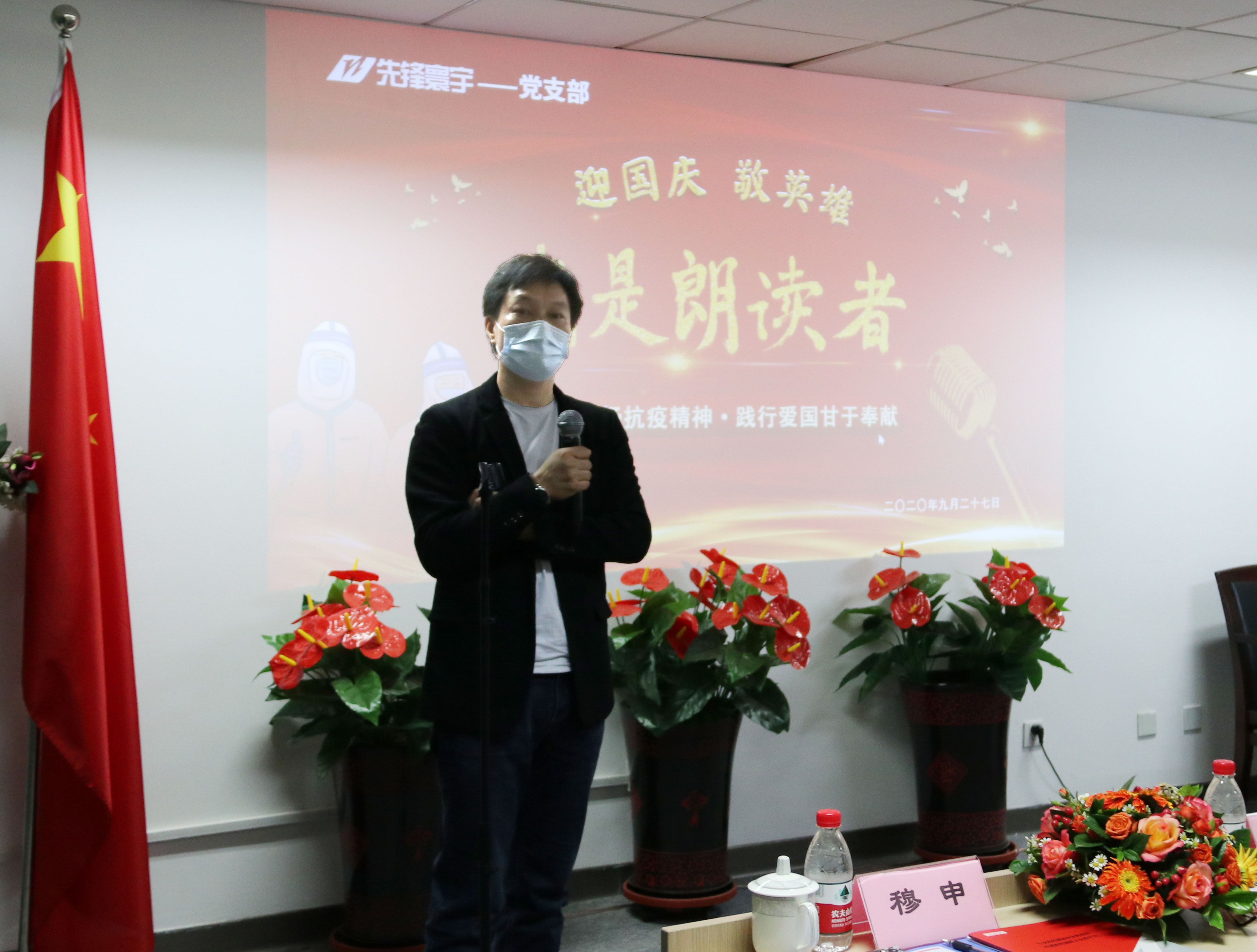 (先锋寰宇党支部迎国庆“学习弘扬抗疫精神·践行爱国甘于奉献”暨先锋寰宇第二届“我是朗读者”读书会现场)
