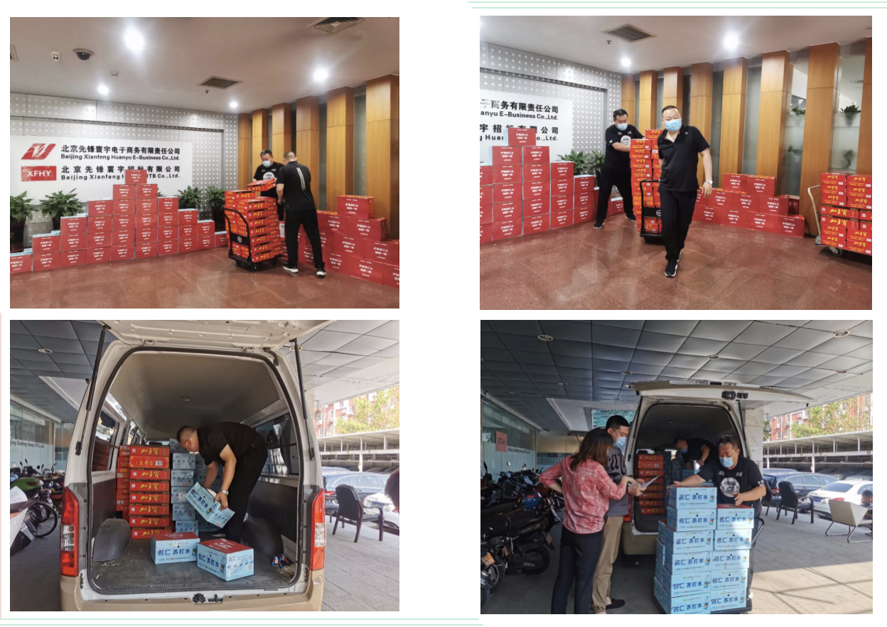 6月19日,第一批承载着“医药梦网”爱心的苏打水、绿豆百合汤、加多宝凉茶等解暑饮品装车待发。