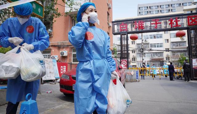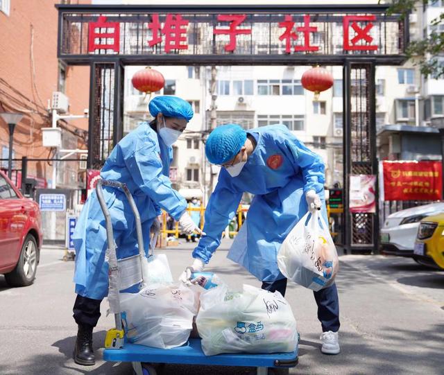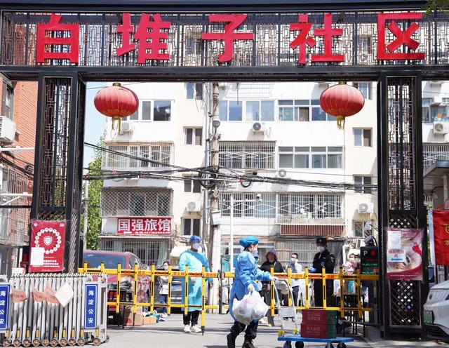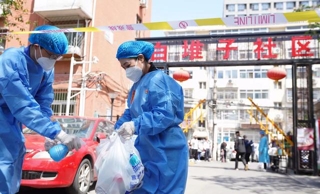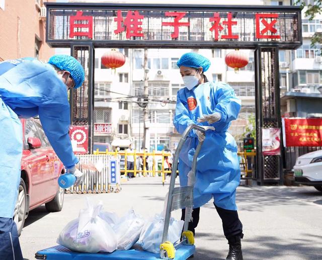 “这个门口10米长的范围,是我们专门设的缓冲区。”白堆子社区党委书记沈拥军说,白堆子社区共有8个小区,均划入了临时管控范围,8个小区共有5700多人,每天的外卖物资高达几千件。“如果快递小哥与管控区里居民直接接触进行配送,一是存在可能的病毒传播风险,二是靠近管控区‘北京健康宝’很容易‘弹窗’,因此8个小区均设置了缓冲区,由全副武装的志愿者们接力消杀、传递物资,为居民和外界之间架起一道安全的桥梁。”