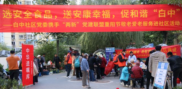 在九九重阳节即将来临之际,为弘扬中华民族爱老、敬老、助老的优良传统美德,10月22日,在甘家口街道党群中心的领导下,甘家口街道两新党建联盟携手白中社区党委开展了“选安全食品,送安康幸福,促和谐‘白中’”重阳节尊老敬老助老活动,为辖区老人送去节日里的温暖,以实际行动传递社会关爱。