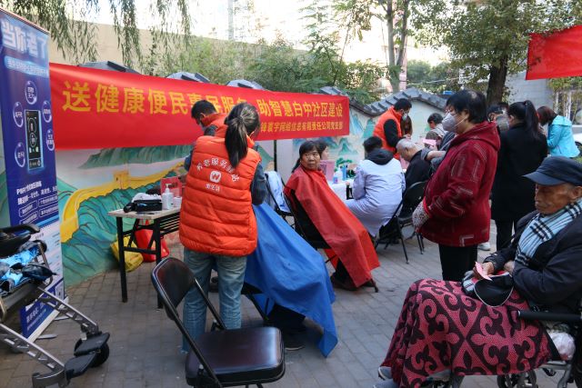 “您有没有高血压、糖尿病史,目前症状稳定吗?”“耳贴3~7天就可以取下来了。”……2023年10月22日上午8时许,甘家口街道白中社区44号院小花园热闹非凡,按摩、测血压、测血氧、贴耳穴、理发等服务点位前来往的老人络绎不绝。