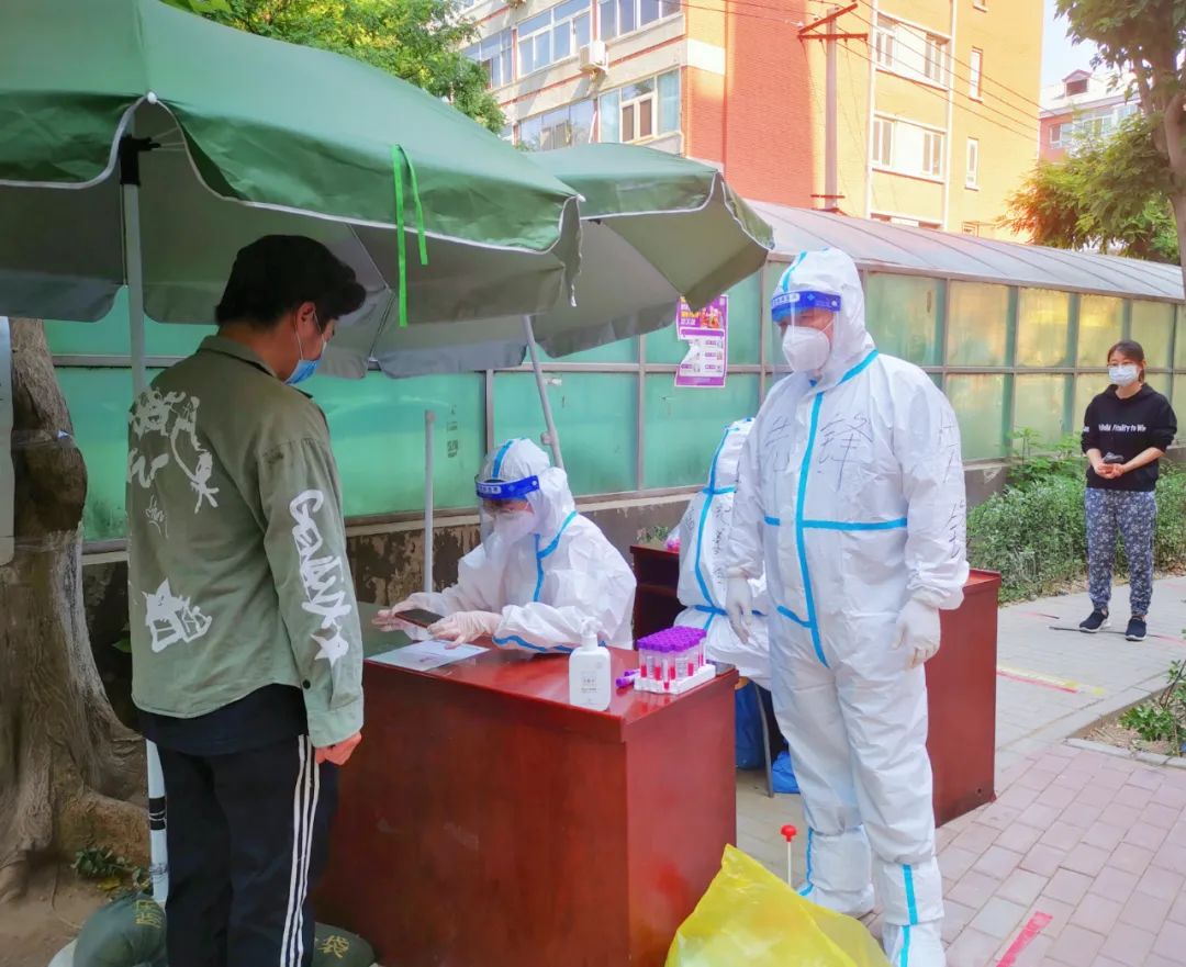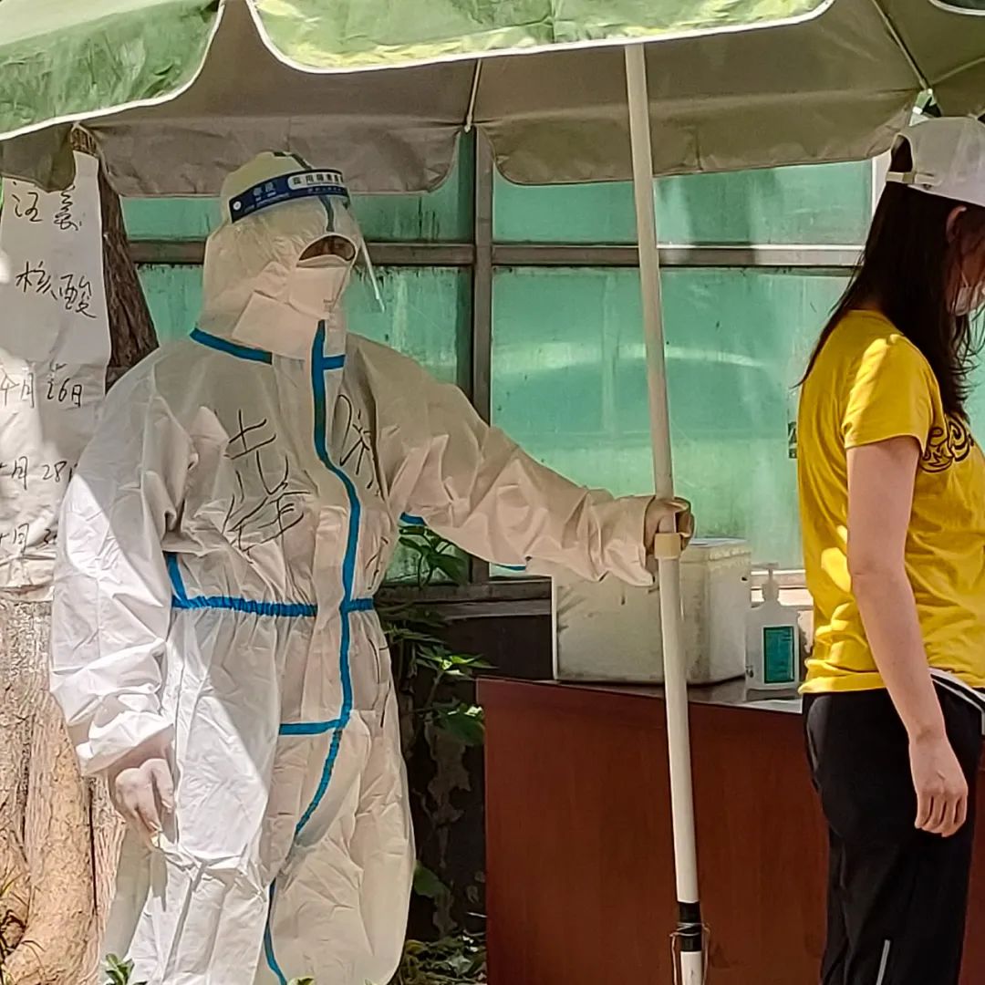 5月25-28日,北京气温骤增,最高气温达36度,先锋寰宇“抗疫小分队”在烈日下身着大白为社区居民提供核酸筛查服务,虽然汗流浃背但仍一丝不苟地完成健康宝查验、秩序维护、现场消杀、上门服务以及工作结束后的现场清理工作。