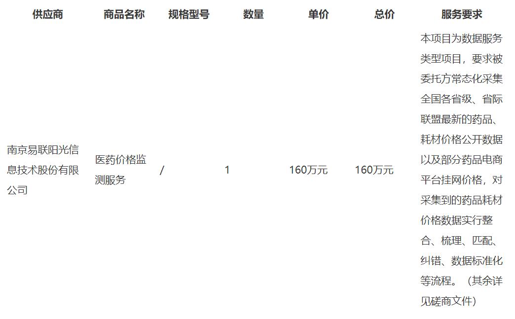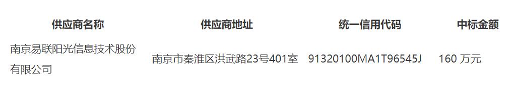 中标成交供应商名称:南京易联阳光信息技术股份有限公司