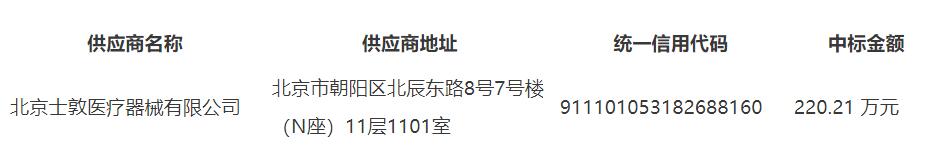 中标成交供应商名称:北京士敦医疗器械有限公司