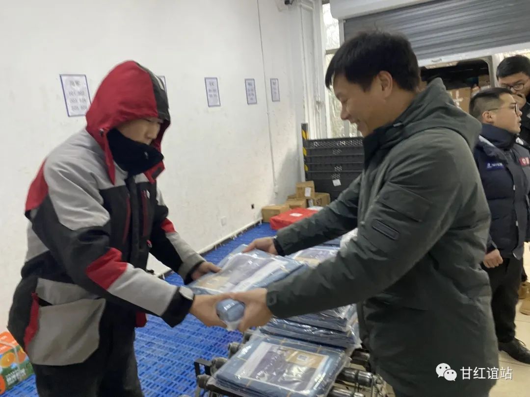 在快递站点,工作人员详细的了解了小甘哥们的工作与生活状况,传达了街道党工委对快递小哥们的关心关爱,感谢他们在寒冬中坚守岗位,为地区发展作出的贡献,同时叮嘱他们在工作过程中一定要注意自身安全和个人防护,做好冬季保暖措施。