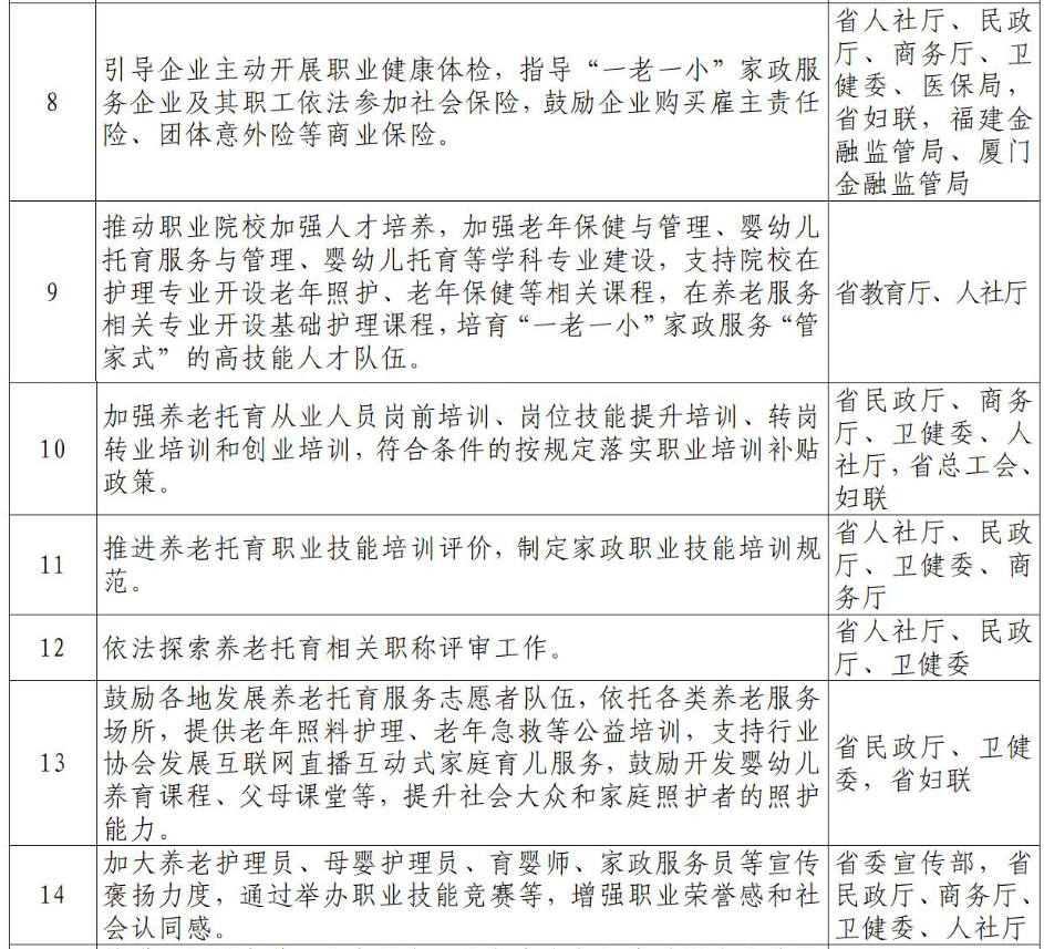 福建省促进“一老一小”家政服务发展若干措施