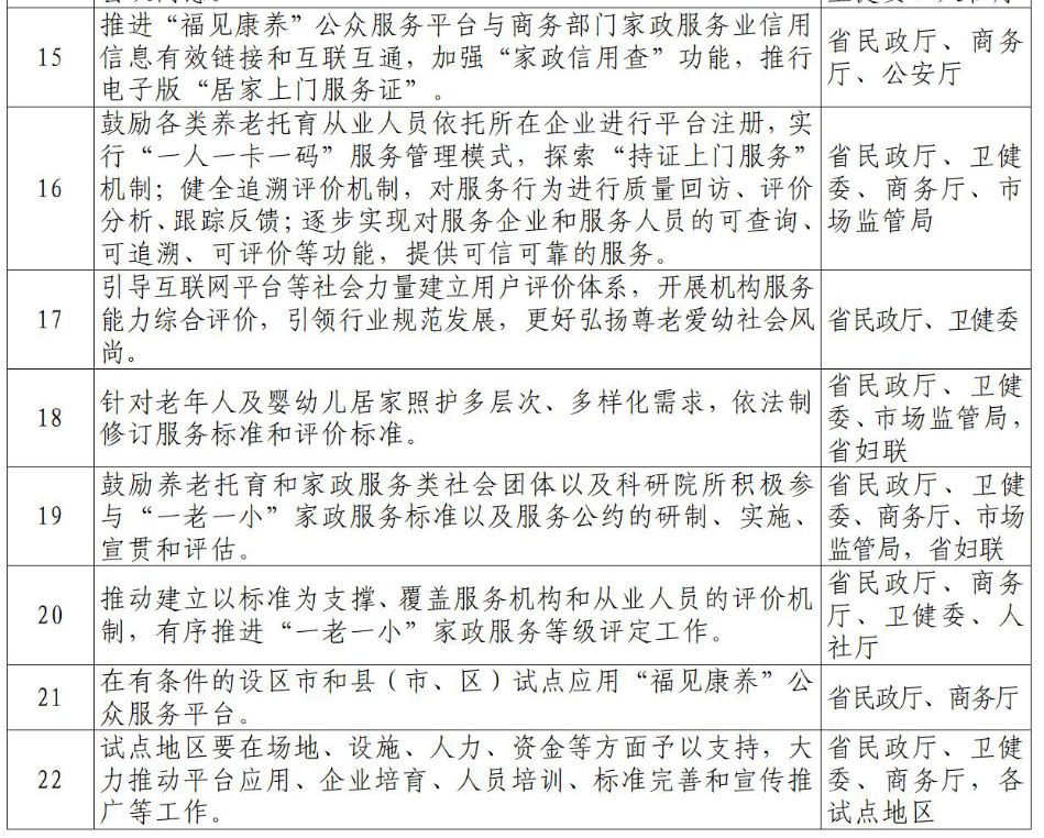 为推进我省养老托育服务体系全方位健康运行,深入挖掘“一老一小”家政服务内需潜能,培育经济发展新动能,满足老年人及婴幼儿居家照护多层次、多样化的需求,制定如下措施。