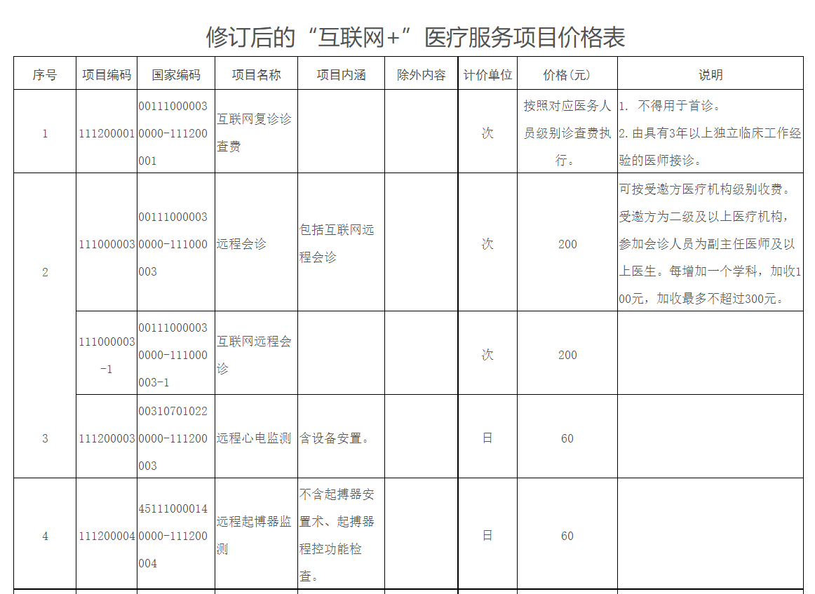 附件:修订后的“互联网+”医疗服务项目价格表