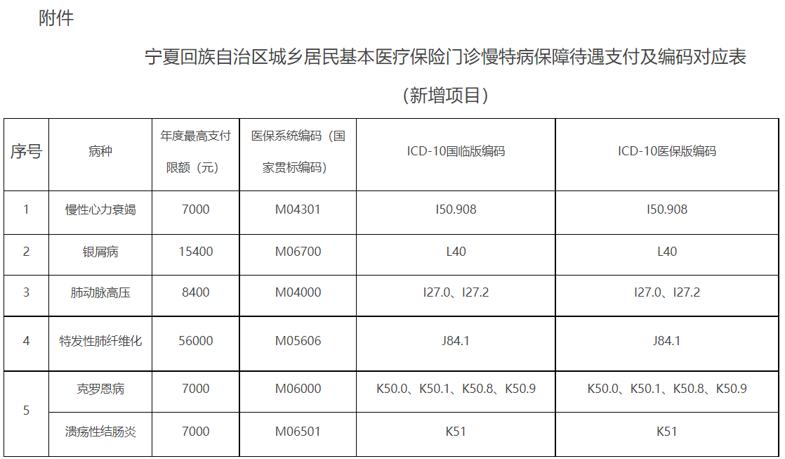 (四)稳步提升基本医疗保障水平。持续巩固门诊保障水平,将普通门诊统筹年度最高支付限额确定为380元(含一般诊疗费及家庭医生签约服务费)。加大门诊慢特病保障力度,将银屑病、特发性肺纤维化、慢性心力衰竭、肺动脉高压、克罗恩病/溃疡性结肠炎新增调入居民门诊慢特病病种(具体见附件1),最高支付限额按病种确定。扩大职工医保个人账户共济范围,由直系亲属扩大至近亲属。