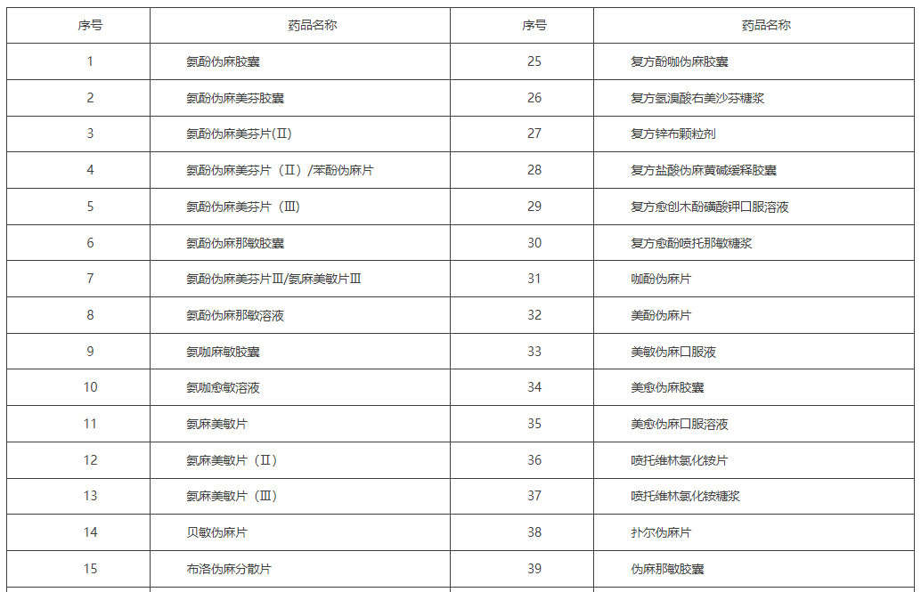 4.西药部分第1255号“缓解感冒症状的复方OTC制剂”包括的品种(通用名称)见下表: