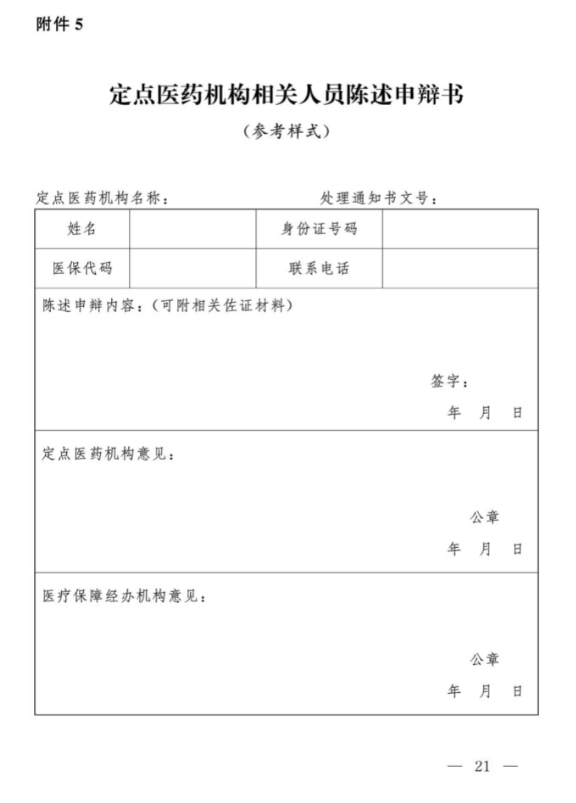 5.定点医药机构相关人员陈述申辩书