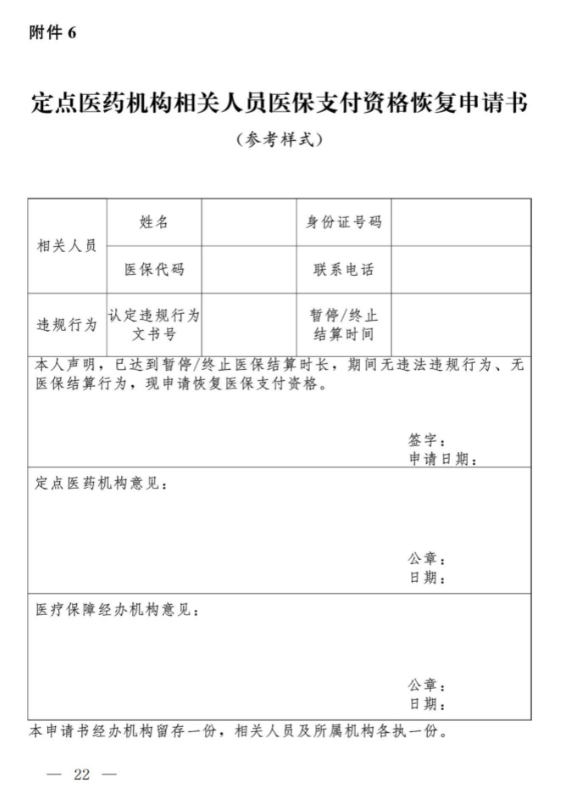 6.定点医药机构相关人员记分恢复申请书
