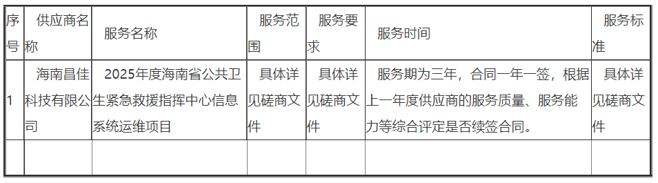 二、项目名称:2025年度海南省公共卫生紧急救援指挥中心信息系统运维项目