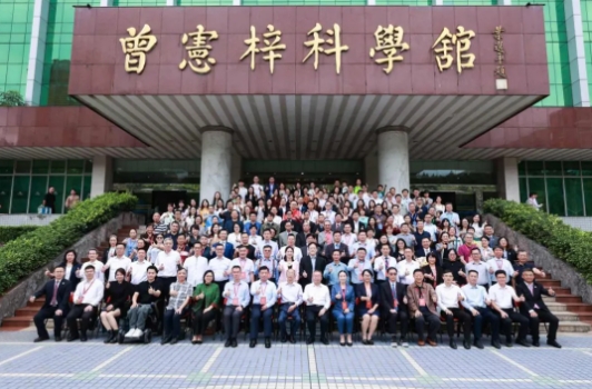 岁月悠悠廿五载,薪火相传育岐黄。11月17日,暨南大学中医学院建院25周年庆祝大会暨传承发展论坛在石牌校区曾宪梓科学馆国际会议厅隆重举行。暨南大学党委常委、副校长张荣华教授,国家中医药管理局中医师资格认证中心王凤珍副主任,广东省中医药局医政处郭洁吾处长,广东省中医药学会金世明副会长,暨南大学中医系首任系主任沈英森教授,暨南大学中医学院原党委书记陈利国教授、中医系原系主任赵国平教授、原副院长杨钦河教授,广州博济医药科技股份有限公司王廷春董事长,芬氏集团黄忠亨董事长及夫人翟巧芬女士,澳门华宝医疗中心胡羽添董事长,广东人和中医院有限公司陈景忠董事长、陈友海副总经理,广州医科大学附属第二医院党委张竞之书记,广东祈福医院党委向继云书记,广州市黄埔区中医医院党委王嘉锋书记,广州市黄埔区中医医院洪少东院长,广州中医药大学针灸康复临床医学院(主持工作)副院长孙健教授,江门中医院党委李鹏飞副书记,南海中医院工会赖洪康主席,广州市南沙区中医医院黎锦昌院长,佛山市中医院陈苹副院长,广州中医药大学深圳医院王南卜副院长,山东济宁医学院中西医结合学院于斌副院长,广州市荔湾区骨伤科医院党总支谢宇明书记,广东佛山市三水区人民医院党委委员汪学军主任医师,广东省东莞国药集团有限公司运营中心杨永诚副总监,澳门中医药学会会长、中医学院澳门同学会石崇荣会长,中医学院香港同学会区浩庭会长,以及学校职能部门、兄弟学院领导以及师生代表近400人参加大会。大会由暨南大学中医学院党委书记金学刚主持。