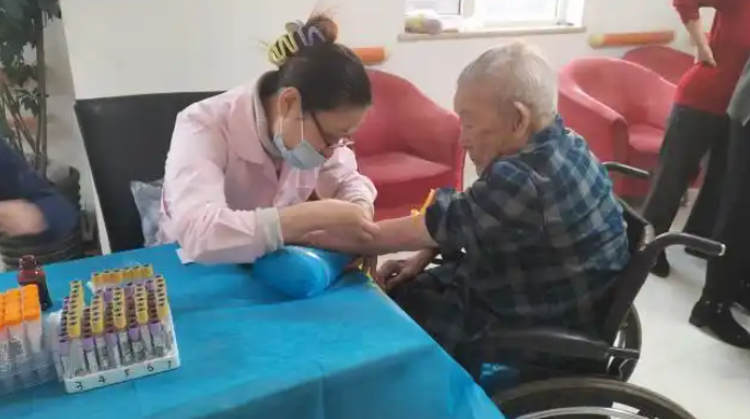 每日清晨,为了保证老人们既能享受到义诊服务,又不影响正常生活作息,医护人员们便早早抵达养老院,迅速而有序地在养老院活动区域布置临时诊疗点。尽管天气略带寒意,但现场氛围却十分热烈,老人们在工作人员的引导下,有序排队,满怀期待地等待接受检查。此次义诊包括血压、血糖检测、静脉采血等。同时,针对常见的糖尿病、高血压等慢性疾病,医疗团队不仅进行了详细的检查,还为居民们普及了中医方面的健康知识,指导他们如何正确预防疾病、保持良好的生活习惯,增强自我保健意识,力求为老人提供全方位的健康评估。
