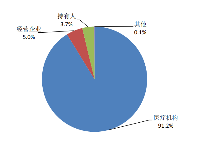 2024年生物制品不良反应/事件报告中,医疗机构报告占76.2%、持有人报告占23.4%、经营企业和其他机构报告占0.4%。严重报告中,医疗机构报告占80.3%、持有人报告占19.6%、经营企业和其他机构报告占0.1%。