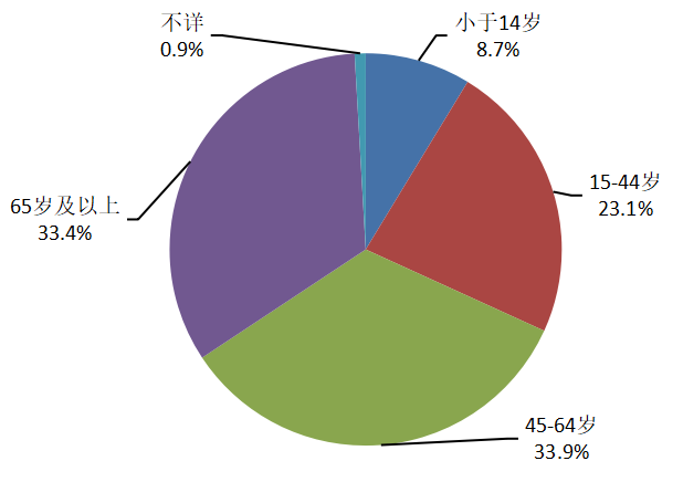 2024年生物制品不良反应/事件报告中,男女性别比为1.15:1。14岁及以下儿童患者占7.4%、15-44岁年龄组占15.4%、45-64岁年龄组占37.5%、65岁及以上老年患者占32.9%、不详占6.8%;其中排名第1位的为45-64岁年龄组。