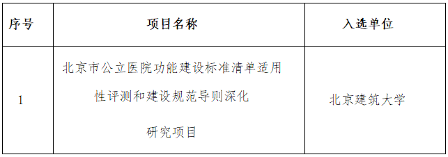 我委于2025年4月2日在本网站上发布了《关于北京市公立医院功能建设标准清单适用性评测和建设规范导则深化研究项目的遴选公告》。经评审,现将遴选结果予以公示。
