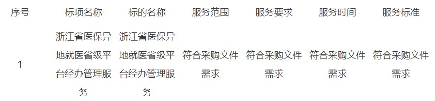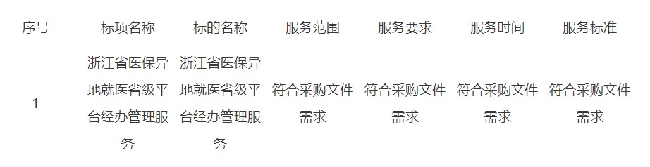 二、项目名称:浙江省医保异地就医省级平台经办管理服务项目