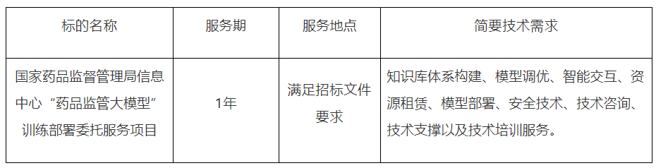 项目名称:国家药品监督管理局信息中心“药品监管大模型”训练部署委托服务项目
