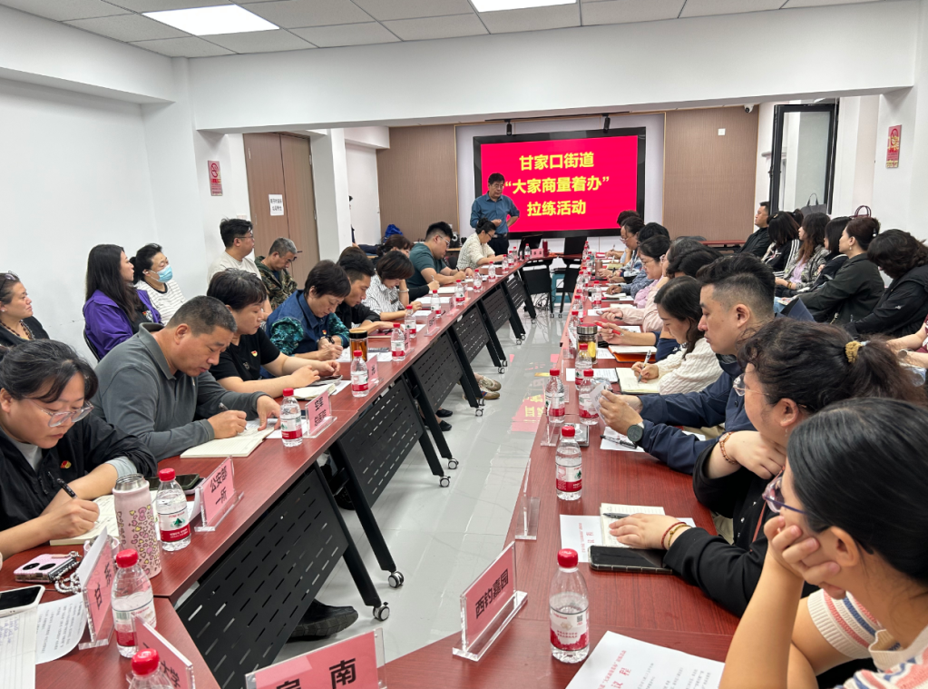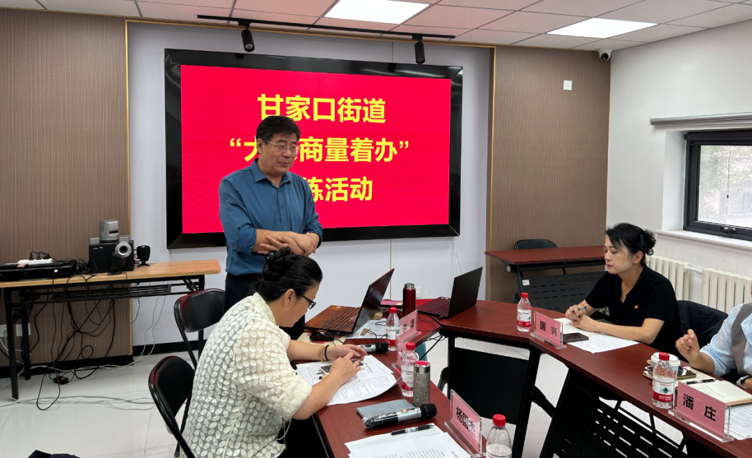 为深化党建引领基层治理“大家商量着办”,精准破解民生难题,9月23日上午,甘家口街道在白堆子社区党群服务中心组织“大家商量着办”基层拉练活动。街道25个社区的党组织书记、副书记及副主任共50余人参会,党群工作办公室副主任刘文静主持会议。活动特邀北京联合大学应用科技学院李凌教授现场提供专业指导。