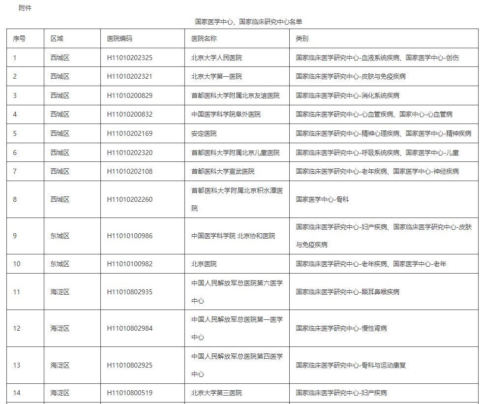 附件:国家医学中心、国家临床研究中心名单